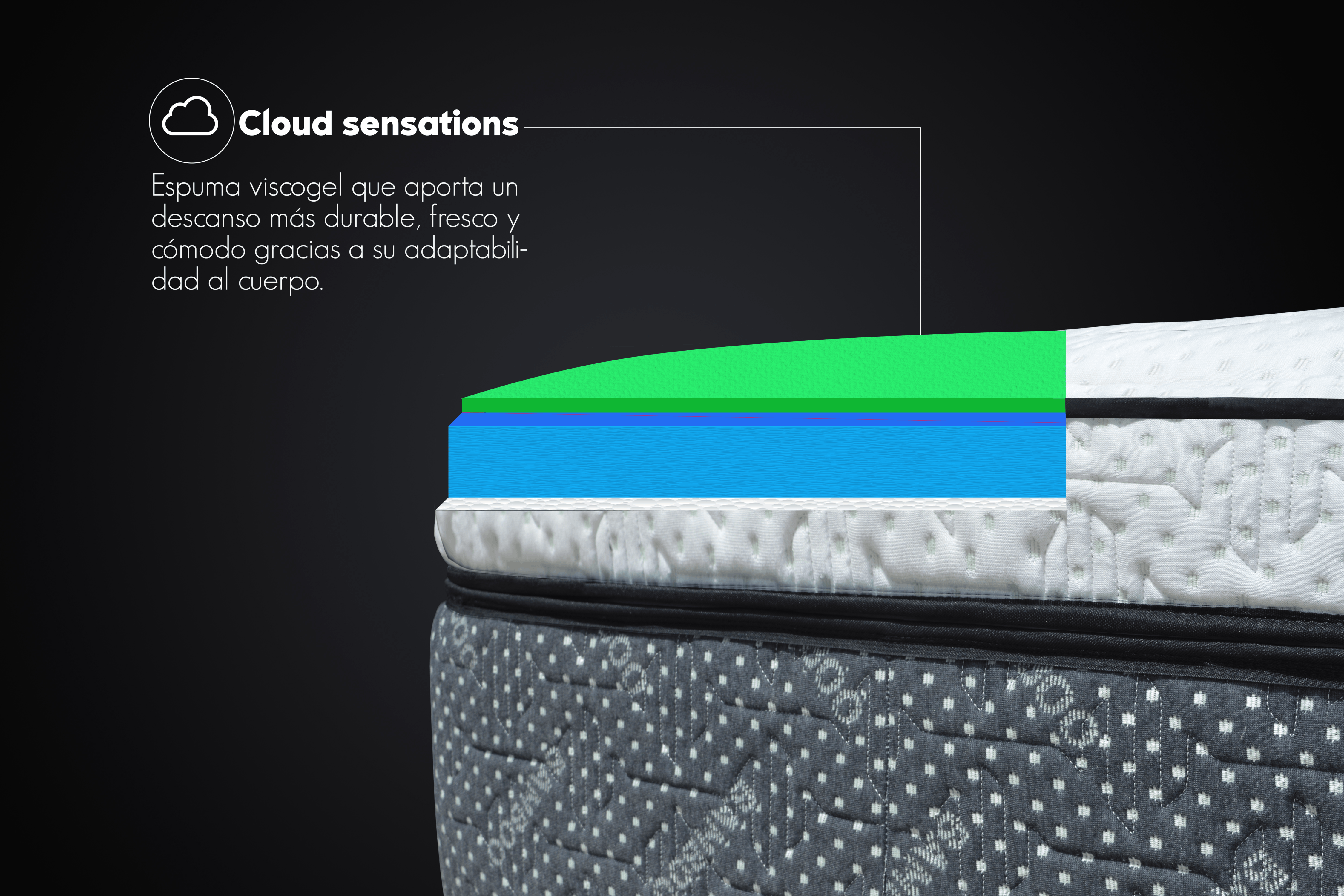 – Pillow top con terminación en espuma viscogel que permite una sensación de frescura y confort.