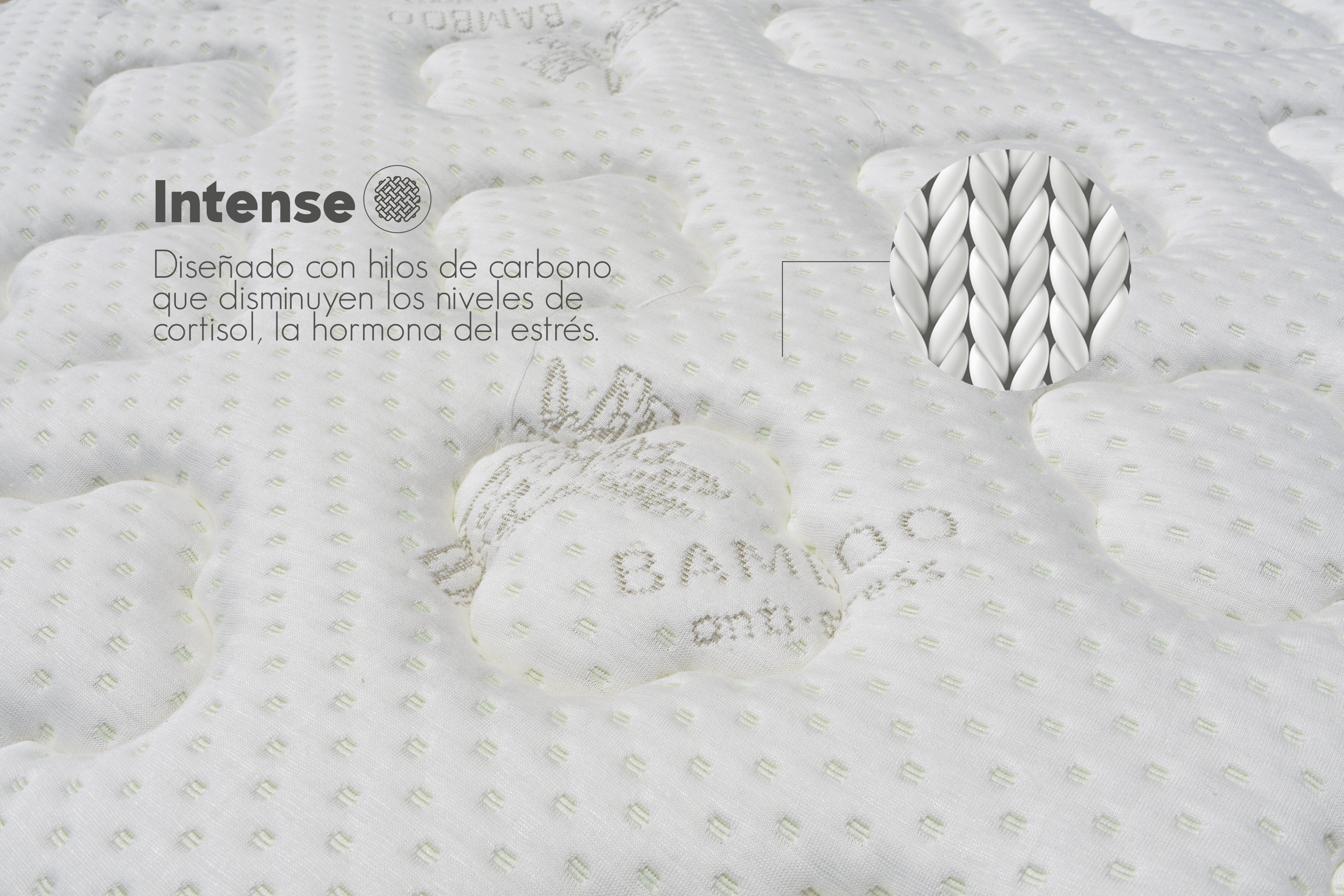 – Tela sofisticada en tejido de punto hecha a partir de fibras de bamboo que junto con una capa de hilos de carbono logran disminuir los niveles de cortisol, la hormona que genera estrés.