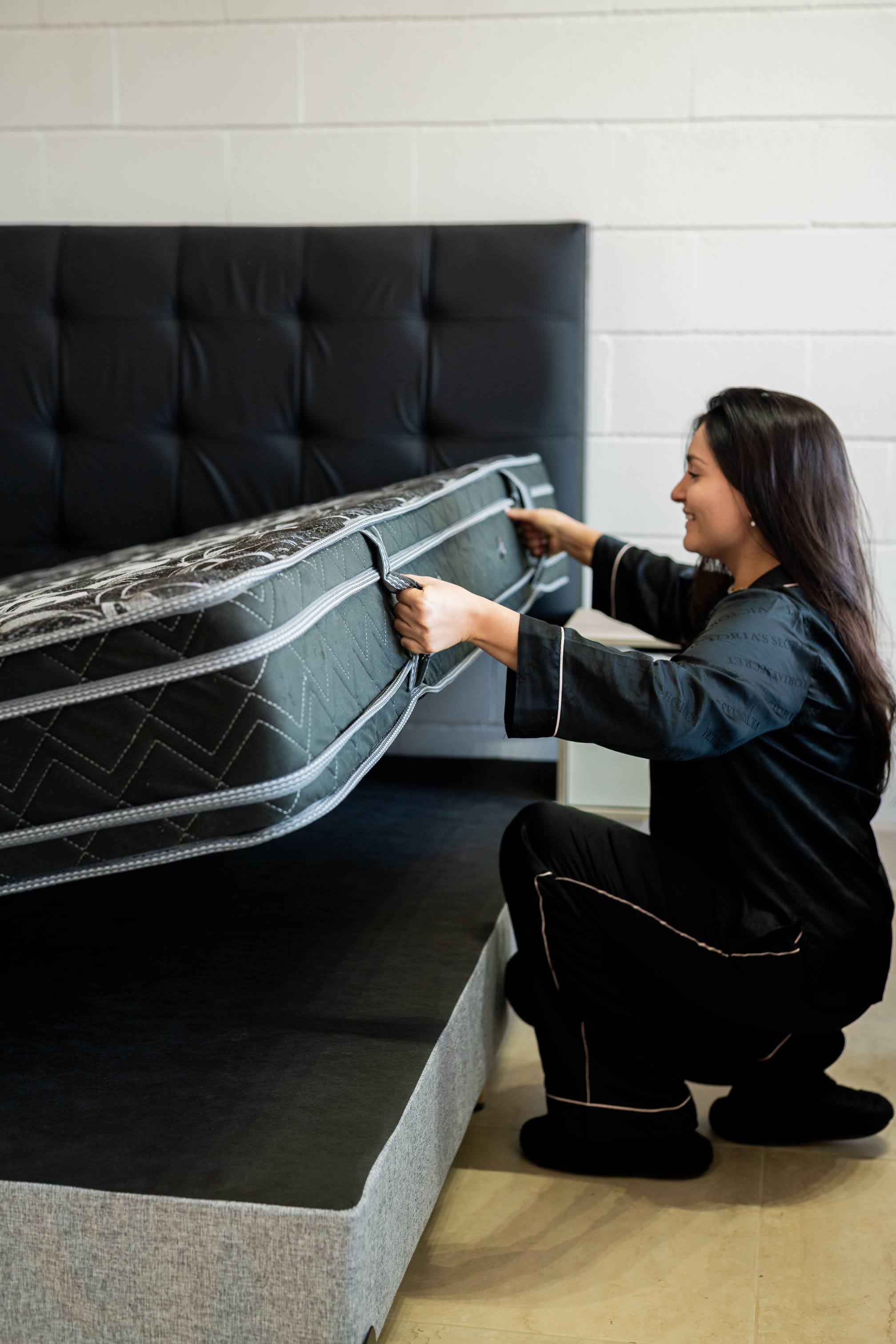 Su superficie en tela de tejido de punto y laterales de pana negra combinan elegancia y durabilidad. Además, incluye agarraderas laterales para un manejo más práctico. Un colchón diseñado para adaptarse a tus necesidades con estilo y comodidad.